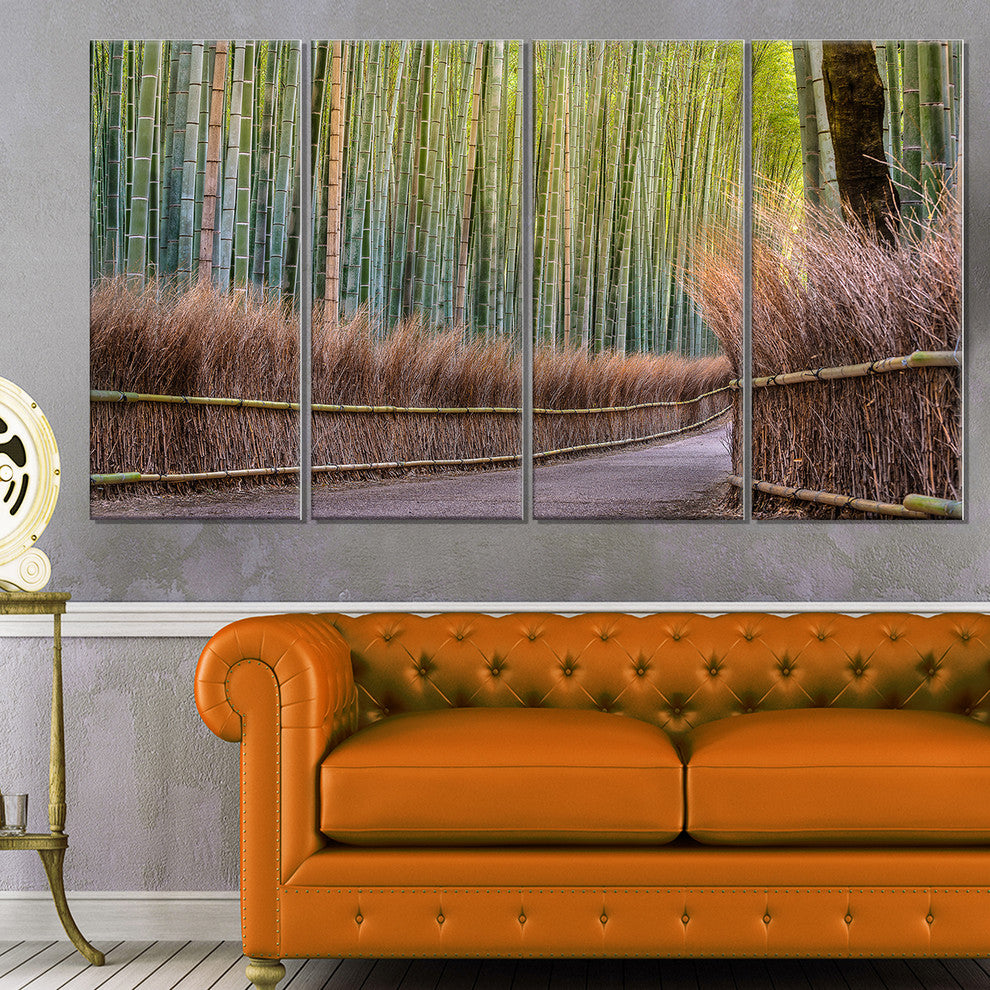 "Pathway Inside Bamboo Forest" Forest Canvas Wall Art Print, 4 Panels, 48"x28"
