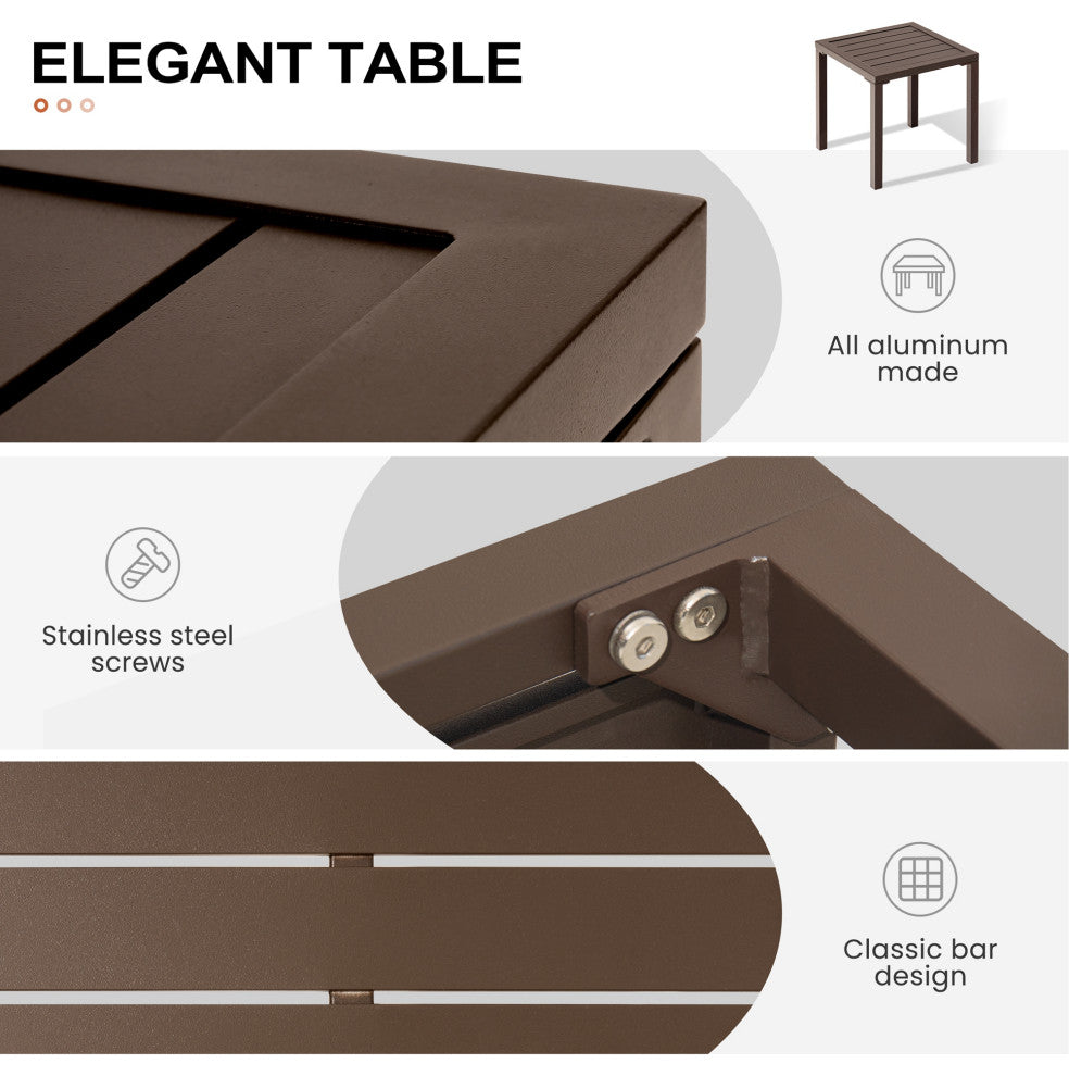 Patio Set Outdoor Aluminum Adjustable Chaise Lounge Chairs and Table Set, Brown
