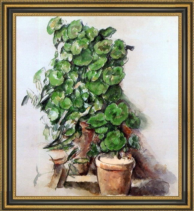 16" x 20" Paul Cezanne Pots of Geraniums framed premium canvas print reproduced to meet museum quality standards. Our Museum quality canvas prints are produced using high-precision print technology for a more accurate reproduction printed on high quality canvas with fade-resistant, archival inks. Our progressive business model allows us to offer works of art to you at the best wholesale pricing, significantly less than art gallery prices, affordable to all. This artwork is hand stretched onto wooden stretcher bars, then mounted into our 3 3/4" wide gold finish frame with black panel by one of our expert framers. Our framed canvas print comes with hardware, ready to hang on your wall. We present a comprehensive collection of exceptional canvas art reproductions by Paul Cezanne.