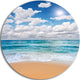 Peaceful Seashore Under White Clouds, Modern Beach Round Wall Art, 11"