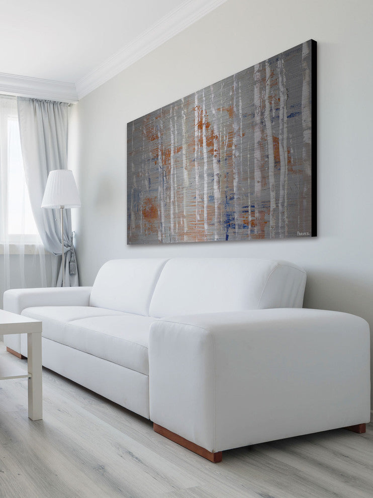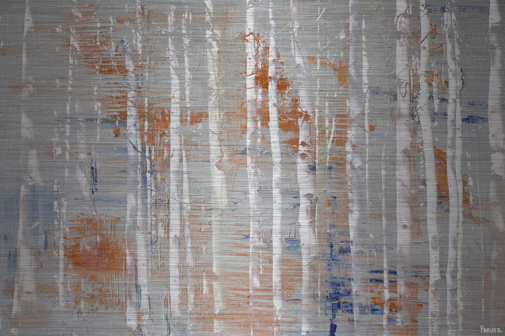 Striking and unique, the "Peachy Trees" Painting Print on Brushed Aluminum by Parvez Taj will bring your walls to life. Printed on brushed aluminum, this 36 inch wide by 24 inch tall contemporary artwork will make a statement in any living room, dining room, or bedroom.- Fine art UV ink print on brushed aluminum by Parvez Taj- the aluminum pops the colors and creates an iridescent shimmer - which gives depth to a room- Arrives ready to hang- Includes a certificate of authenticity- Artist signature on the front