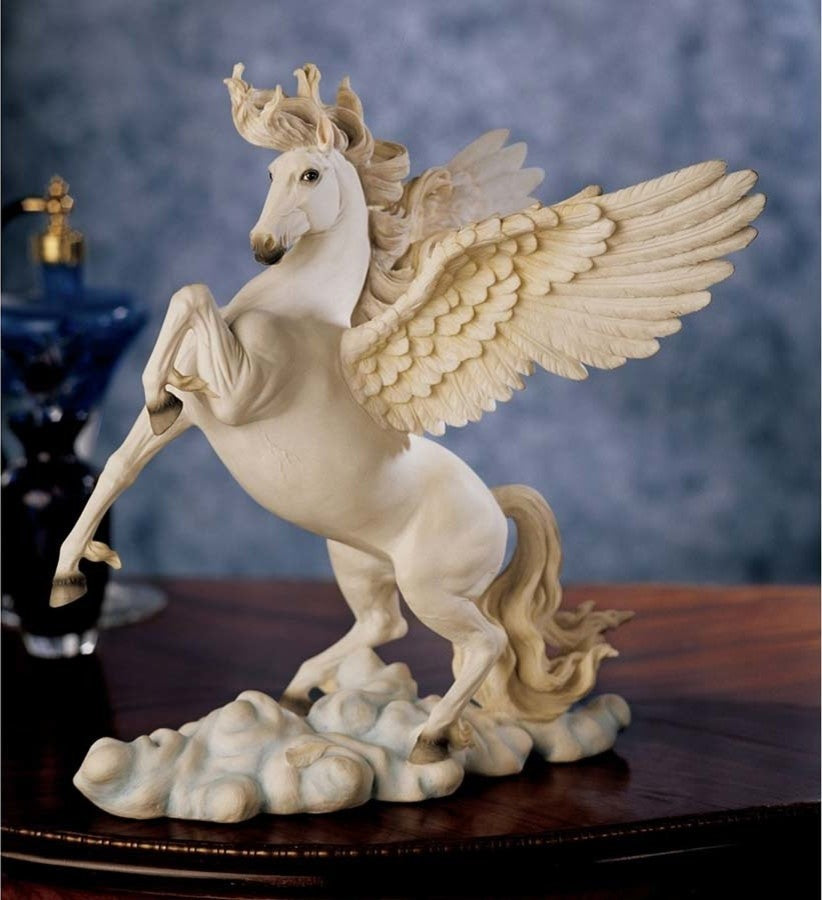 This classically trained artist captures the high-spirited flying horse of Greek mythology in stunning sculpture. Wind whipping through its mane, Pegasus takes to the sky as poetry in motion. Intricately sculpted, then cast in quality designer resin and meticulously hand-painted, this impressive work is sure to please lovers of the equestrian and fine arts. 7.5"Wx11"Dx11.5"H. 3 lbs.