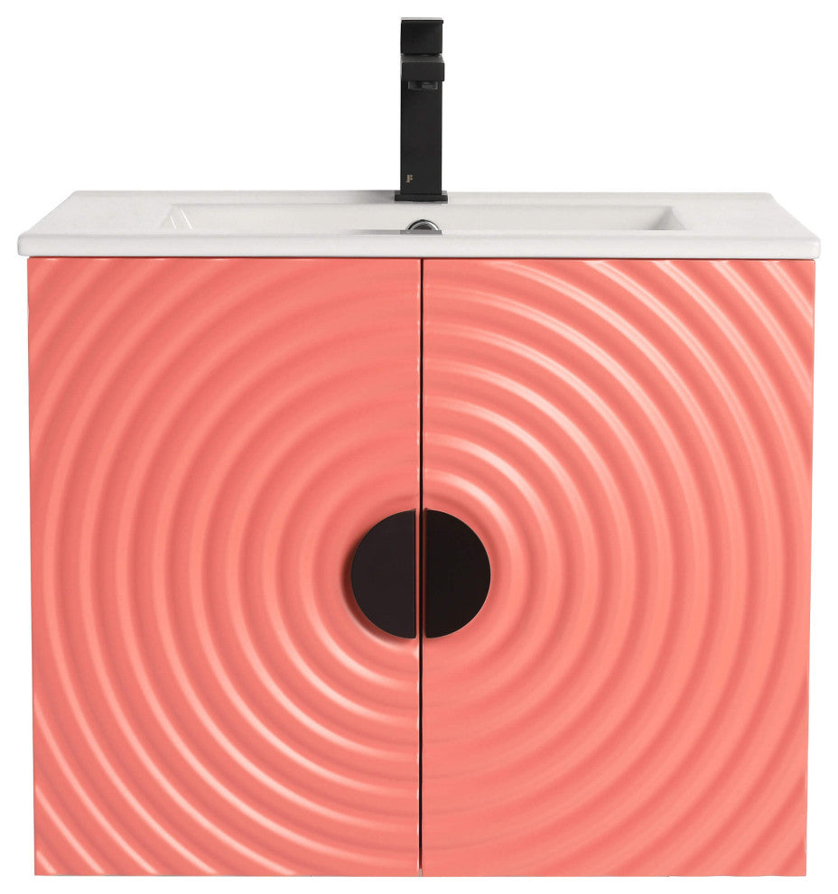 The PELLABAY vanity collection brings a contemporary flair to any bathroom with its unique, textured design. Featuring a bold, circular pattern on the cabinet doors, this collection combines visual appeal with functionality. The clean, minimalist shape of the vanity creates a modern aesthetic, while the smooth finish adds a sleek touch. Perfect for those looking to make a statement in their space, the PELLABAY collection offers a stylish blend of form and practicality, elevating your bathroom''s design.