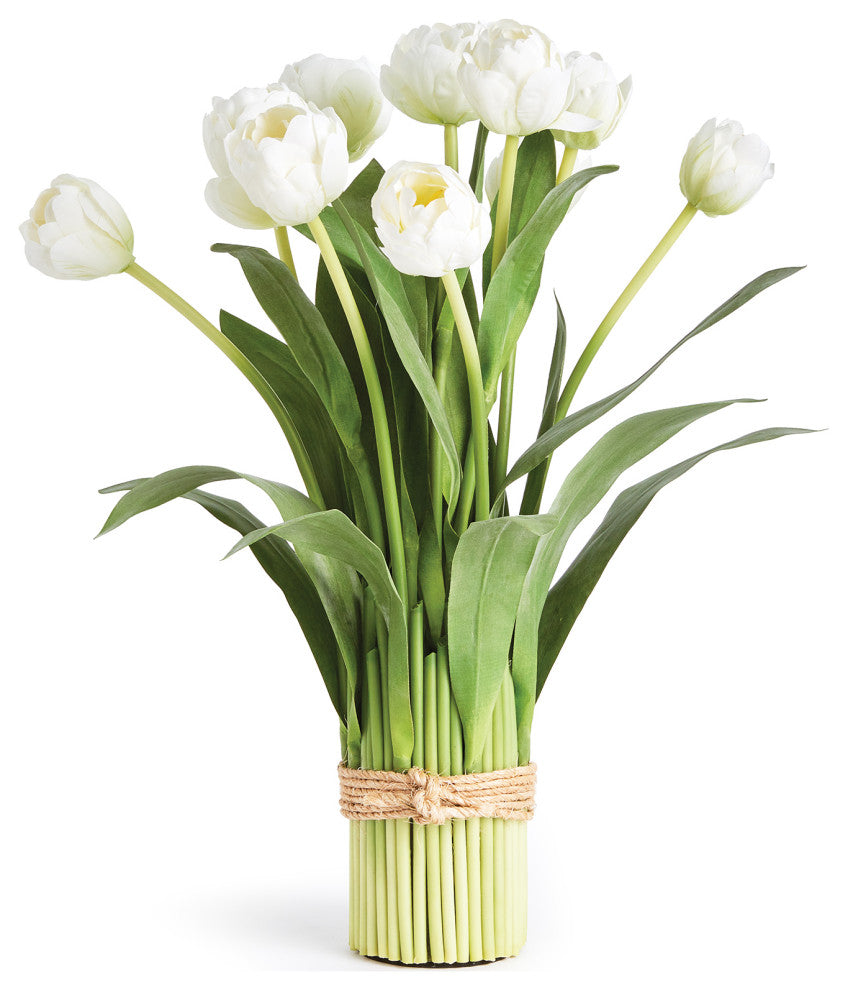 100% realistic- a perfect copy of nature. This drop-in is a no-maintenance work of art. A beautiful stand-alone arrangement, this bundle is wrapped in natural jute twine. A nice addition to desk, kitchen counter or anywhere for a bit of cheer.