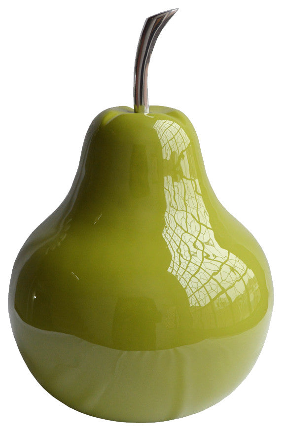 A perfect accent piece on the desk in your office or on the console table in the living room, the Manzano Pear makes a modern statement in your home. Sleek and stylish, this decorative accent is in the shape of an apple and is complete with a leaf on the stem. Made with aluminum, the pear boasts a bright and bold green color.