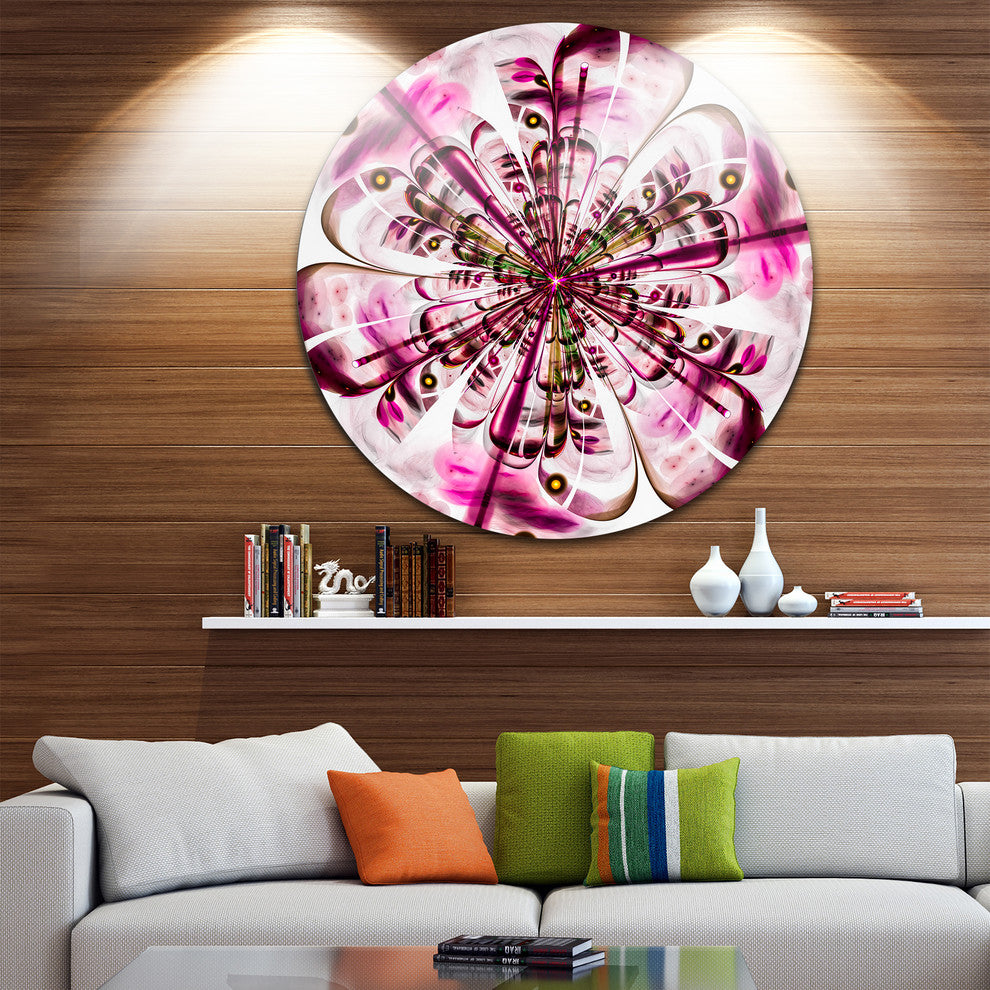 Bring Contemporary Abstraction to your home with this large Circle Metal wall art. This Perfect Digital Flower Art in Dark Pink Metal Artwork makes it the focal point of any room or office.
