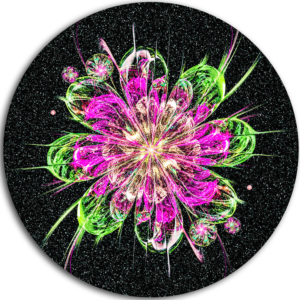 Bring Contemporary Abstraction to your home with this large Circle Metal wall art. This Perfect Fractal Flower in Purple and Green Metal Artwork makes it the focal point of any room or office.
