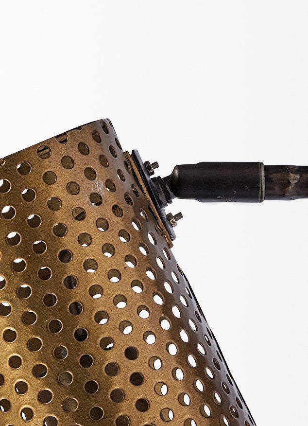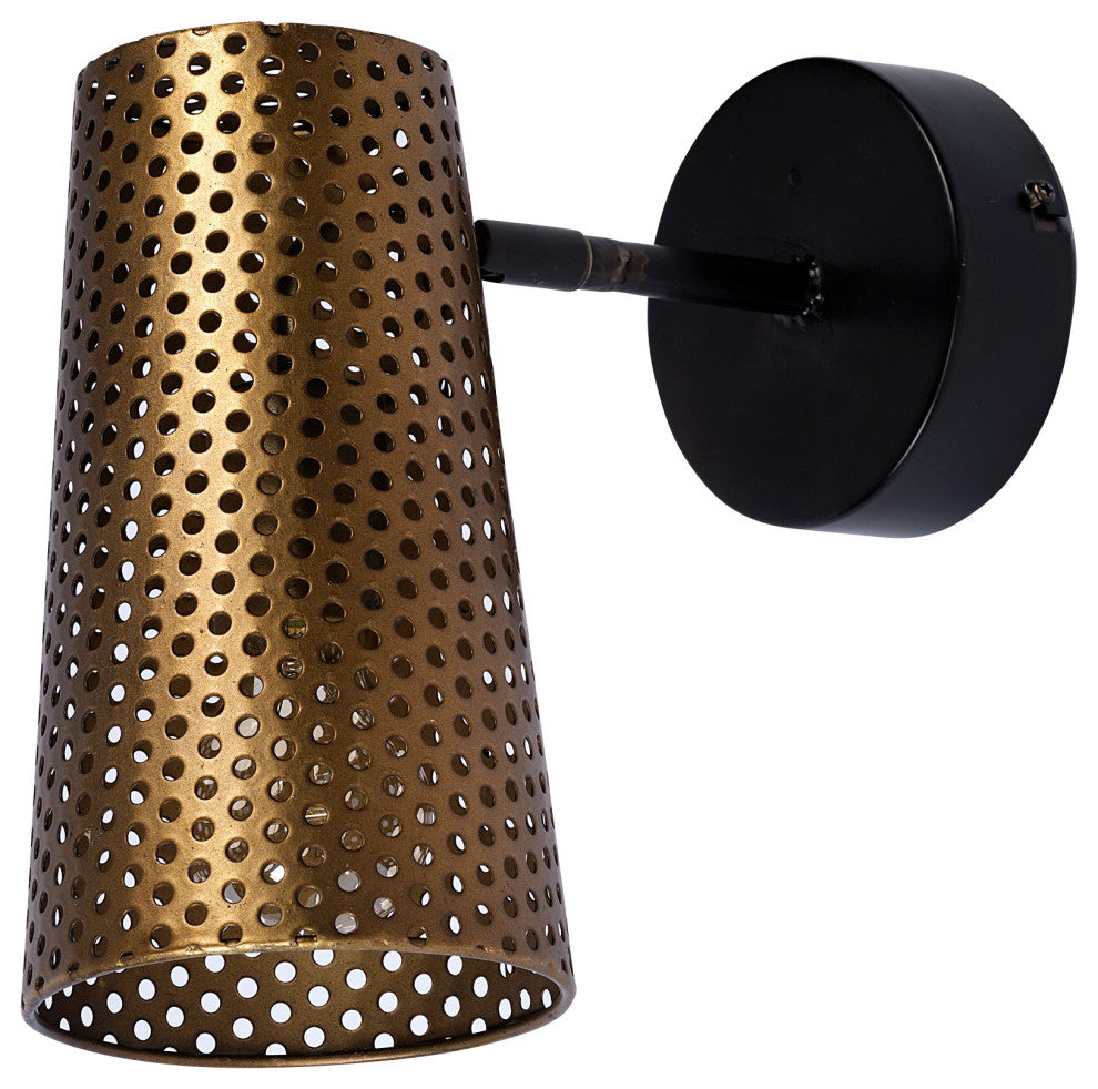 Crafted from metal and finished in a dazzling gold-tone, the Wesley I is a spectacular wall sconce that is sure to add a touch of luxury to any space. It features an inverted cone style, perforated bulb shadeethatehosts a 40 Watt rated, standard E26 bulb that casts a luminous, ambient glow with a unique pattern. The Wesley I, with a mix of gold and matte-black metal accents,efits perfectly in spaces based on the Mercana Modern, Enduring Elegance and Industrial design styles. (CUL Listed, Bulb Not Included, Hardwired)