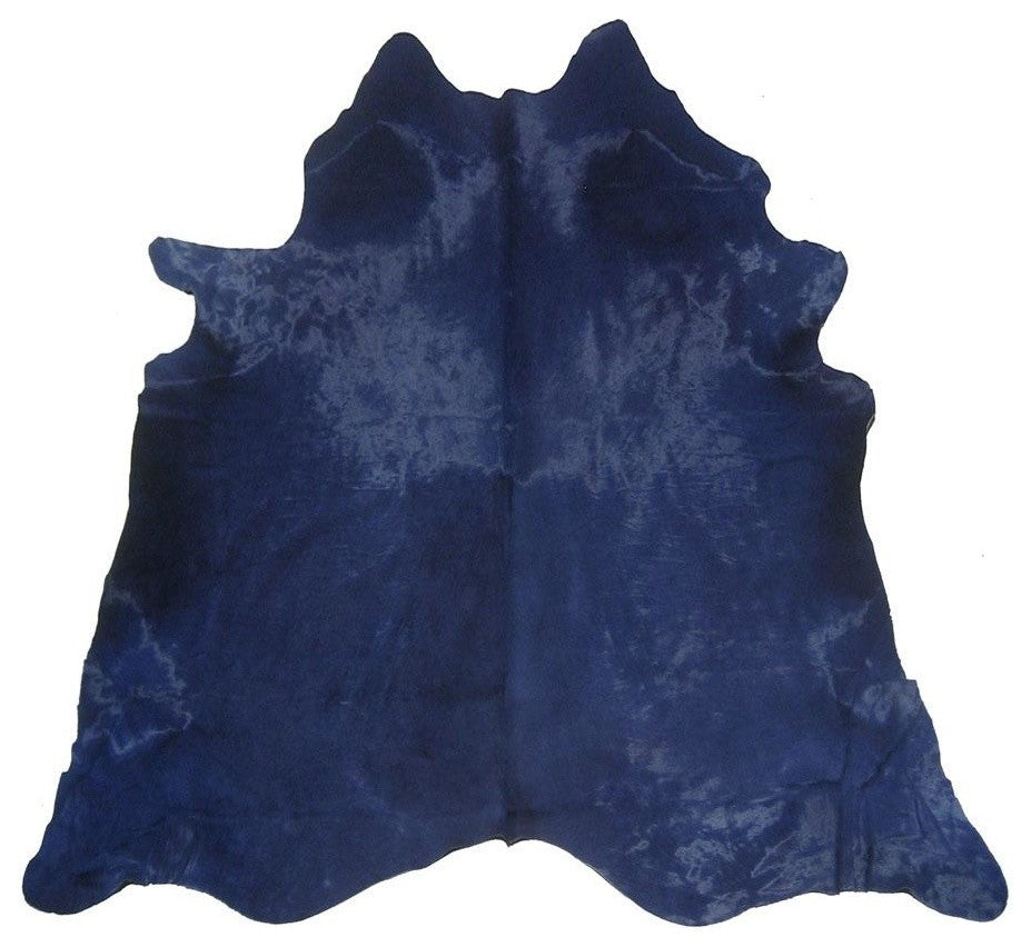 Lay style at your feet with the Pergamino Cowhide Rug, shown here in navy blue. This pergamino cowhide rug steals the floor with Southwestern charm and a natural suede backing. It warms up the floors in your living room, home office or game room. With comfortable and elegant designs, Pergamino helps you and your guests feel right at home.Care: Occasional vacuumingMade in BrazilSizes vary due to nature of productColor: Navy blueMaterials: Natural cowhideDimensions: W 84" x D 90" x H 0.24"