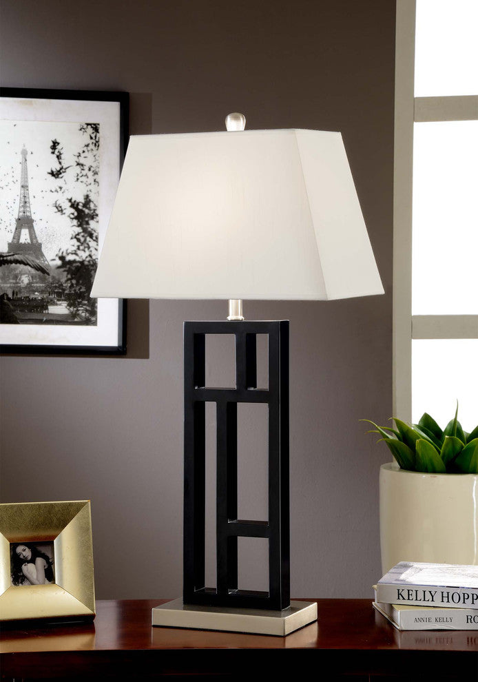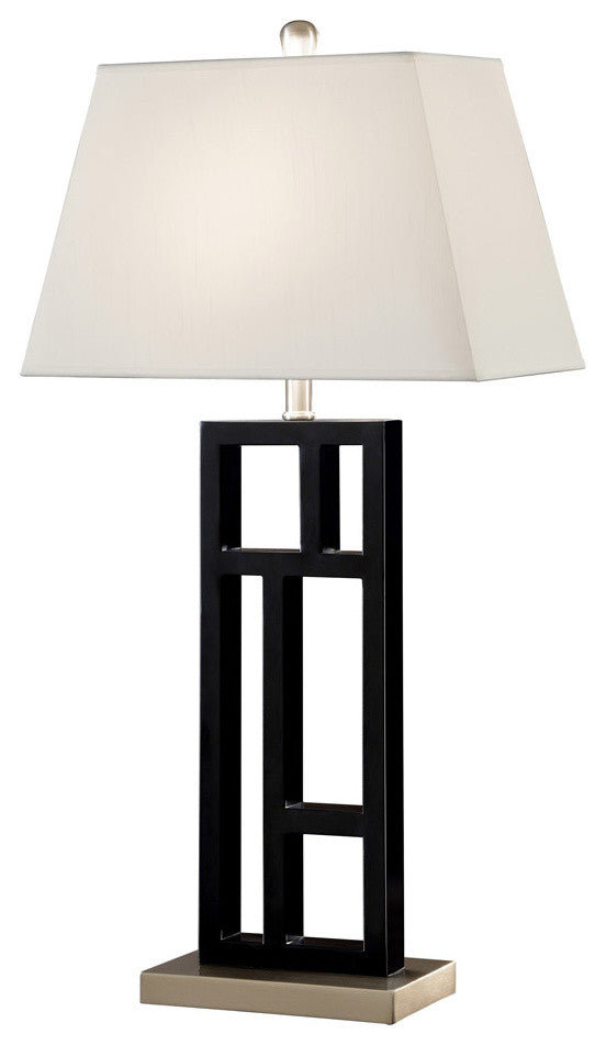Perry 31" Black and Brushed Steel Sculptured Table Lamp With Empire Shade