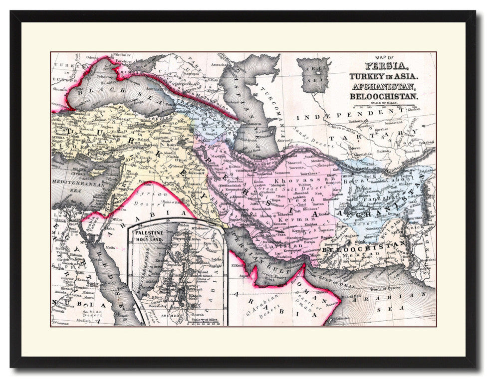 Persia, Iraq, Iran, Afghanistan Map Print On Canvas With Picture Frame 28" X 37"
