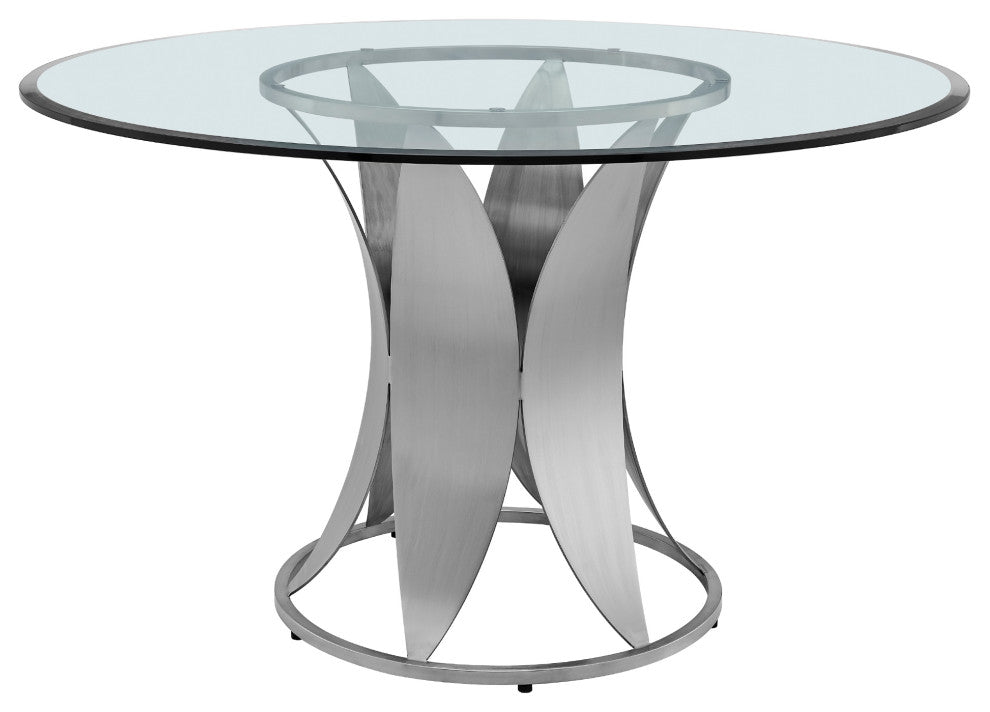 Petal Modern Glass and Stainless Steel Round Pedestal Dining Table