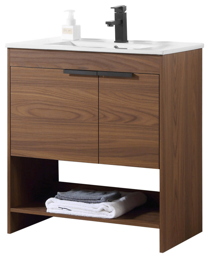 Phoenix Bath Vanity With Ceramic Sink - Full Assembly Required, Walnut, 30 Inch