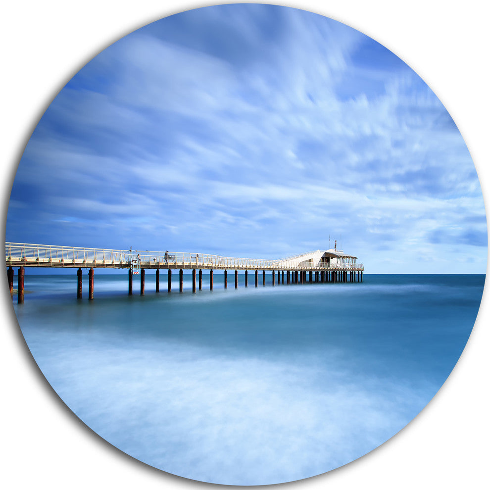 Pier Infinite To Blue Sea, Seascape Photo Round Wall Art, 11"