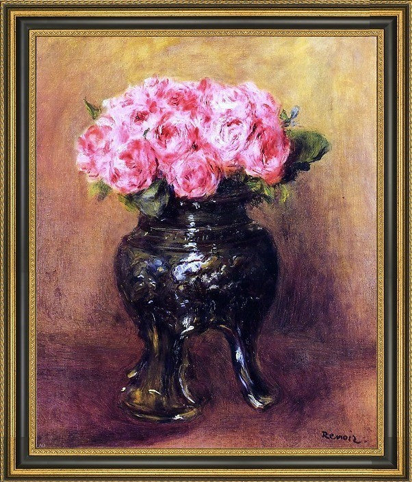 Pierre Auguste Renoir Roses in a China Vase Framed Premium Canvas Print, 20"x25"