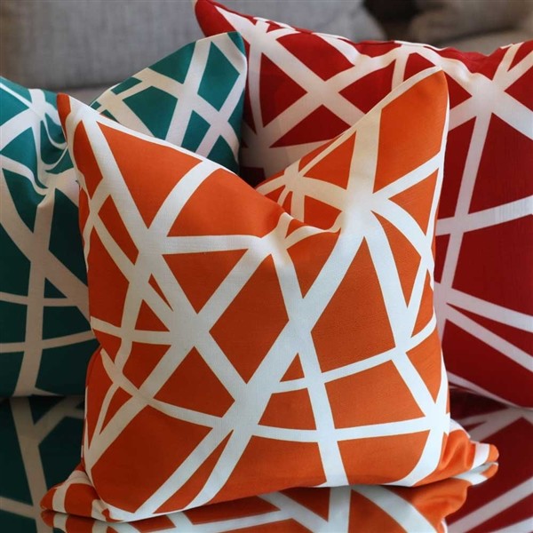 This versatile 19 inch square geometric accent pillow is both modern and elegant. The bold bird?s nest pattern featuring dynamic white stripes on an orange background will add contemporary flair to your home d?cor. The Bird?s Nest Throw Pillow is a great addition to any contemporary designed room. The pillow is perfect as a standalone accent piece or can be used to creatively tie in other d?cor pieces such as abstract art objects. The bird?s nest design is printed on both sides on an indoor/outdoor spun polyester fabric.FEATURES- Size: 20"x20" Square- 100% Polyester- Same fabric front and back- Design printed on front and back- Knife edge seams- Color matched zipper closure- Hand wash cold separately- Filling: Polyester Fiber Fill- Pillow dimensions always refer to the pillow cover width and length while lying flat unstuffed and are rounded up to the nearest whole inch.