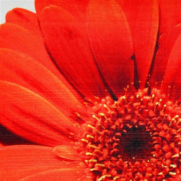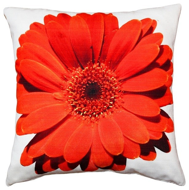 Add a burst of color to your home with this graphic throw pillow featuring a red Daisy flower. The contrast between the pillow?s gentle floral nature and the bold oversized design makes for a striking accent pillow and adds a modern touch to any room. The red daisy design is printed on the front of this indoor/outdoor spun polyester fabric.FEATURES- Size: 19"x19" Square- 100% Polyester- Same fabric front and back- Floral design on front only- Knife edge seams- Zipper closure- Hand wash cold separately- - Filling: Polyester Fiber Fill- Pillow dimensions always refer to the pillow cover width and length while lying flat unstuffed and are rounded up to the nearest whole inch.
