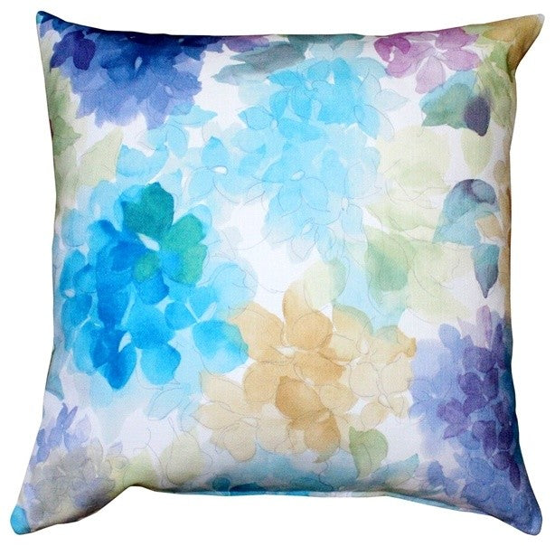 Light and airy, the floral pattern of the May Flower Blue Throw Pillow will brighten up your living space with its happy spring colors. Made from a wonderfully soft yet durable 100% cotton fabric, this pillow combines the artistic beauty of a watercolor painting with contemporary styling.FEATURES- Size: 20"x20"- Fabric: 100% Cotton- Same fabric front and back- Knife edge seems- Color matched- hidden zipper closure- Hand wash- cold water- Filling: Polyester Fiber Fill- Pillow dimensions always refer to the pillow cover width and length while lying flat unstuffed and are rounded up to the nearest whole inch.