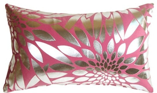 Pillow Decor - Metallic Floral Pink Rectangular Throw Pillow