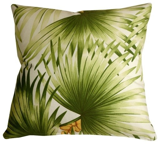 Green palm fronds spread out across this tropical throw pillow. Golden brown coconuts provide a touch of additional color and warmth. Made from a durable cotton blend fabric, this cheerful accent pillows will transport you to a tropical oasis. Features:-Size: 20" x 20"-Fabric: 50% Cotton / 50% Polyester-Same fabric front and back-Knife edge seems-Color matched, hidden zipper closure-Machine washable-Filling: Polyester Fiber Fill • Pillow dimensions always refer to the pillow cover''s width and length while lying flat unstuffed and are rounded up to the nearest whole inch.