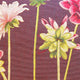 Pink Dahlias in various stages of bloom are splashed across the front of this 19 x 19 square French tapestry throw pillow. A purple background contrasts wonderfully against the green dahlia stems and the pink and rose tones of the flower blossoms. The back of the pillow is a matching wine colored cotton canvas.