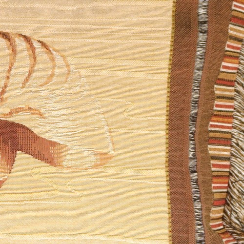 This wonderful rectangular pillow features a richly detailed tiger shell set against a neutral background framed by a chocolate brown striped border and a simple black, white and brown fringe. The rich earth tones give this tropical fish a sophisticated and original touch.Features:-19" x 13" Rectangle Pillow-Made in France, Tapestry Jacquard-Concealed Zipper-Back: Brown Cotton Canvas-Filling: 100% Polyfill • Pillow dimensions always refer to the pillow cover''s width and length while lying flat unstuffed and are rounded up to the nearest whole inch.