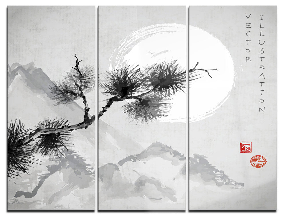 "Pine Tree Branch" Japanese Glossy Metal Wall Art, 3 Panels, 36"x28"