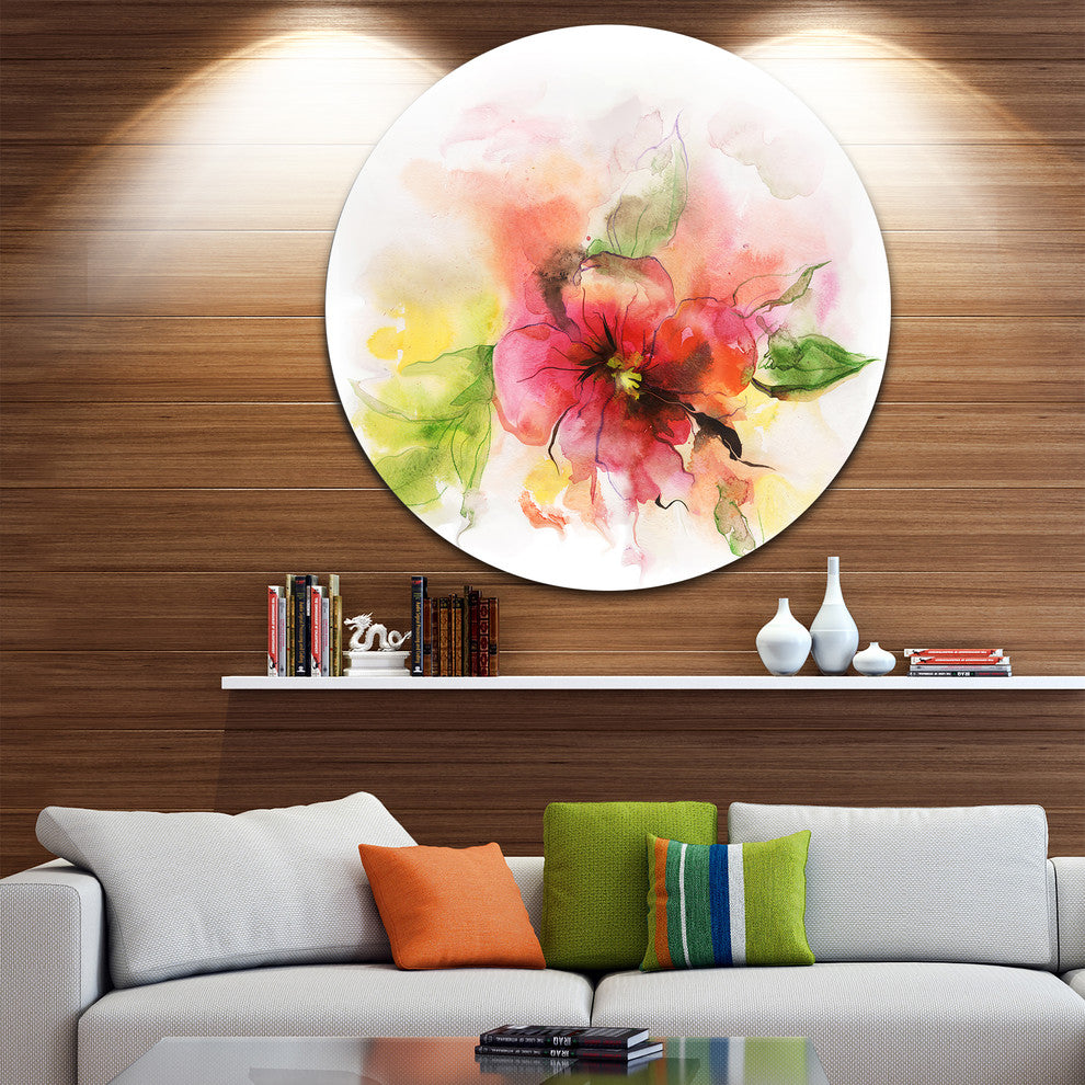 Pink And Red Floral Design, Watercolor Floral Disc Metal Wall Art, 11"