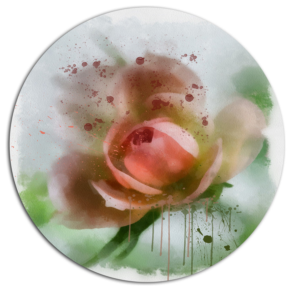 Bring Contemporary Abstraction to your home with this large Circle Metal wall art. This Pink Flower on Green Background Metal Artwork makes it the focal point of any room or office.