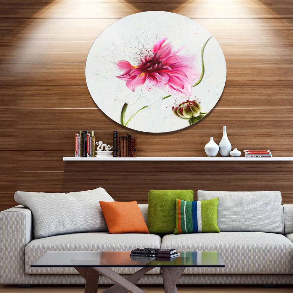 Bring Contemporary Abstraction to your home with this large Circle Metal wall art. This Pink Flower with Stem and Bud Metal Artwork makes it the focal point of any room or office.