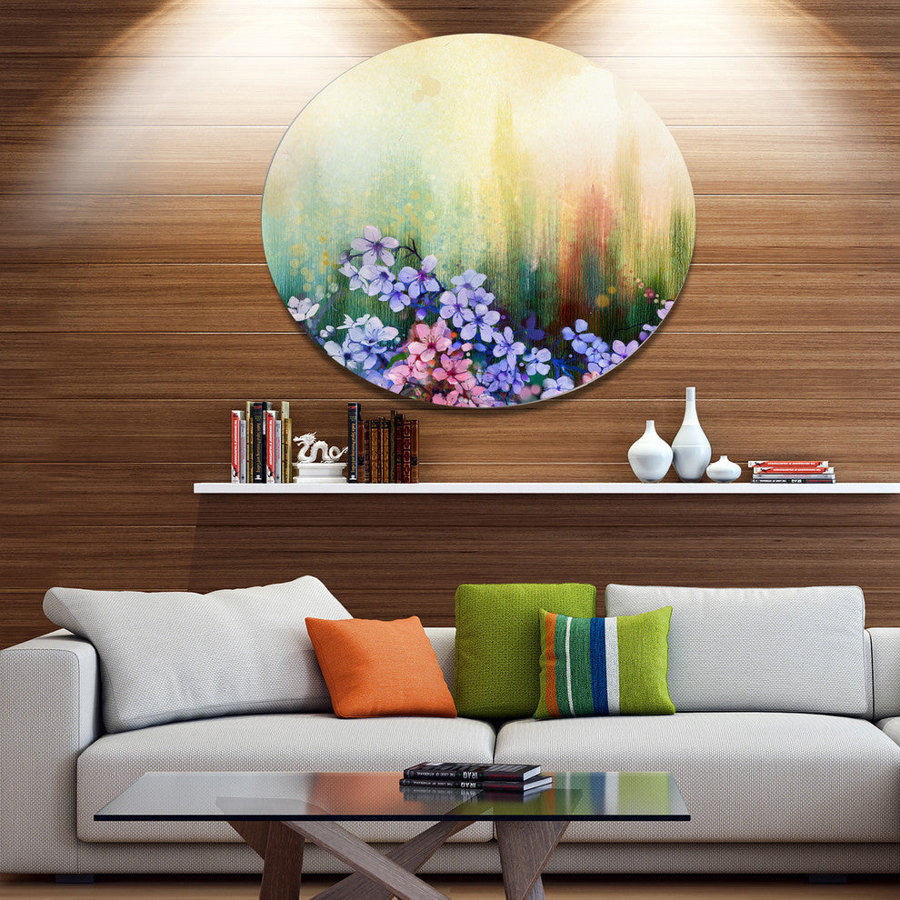 Bring Contemporary Abstraction to your home with this large Circle Metal wall art. This Pink Sakura Flowers in Soft Color Metal Artwork makes it the focal point of any room or office.