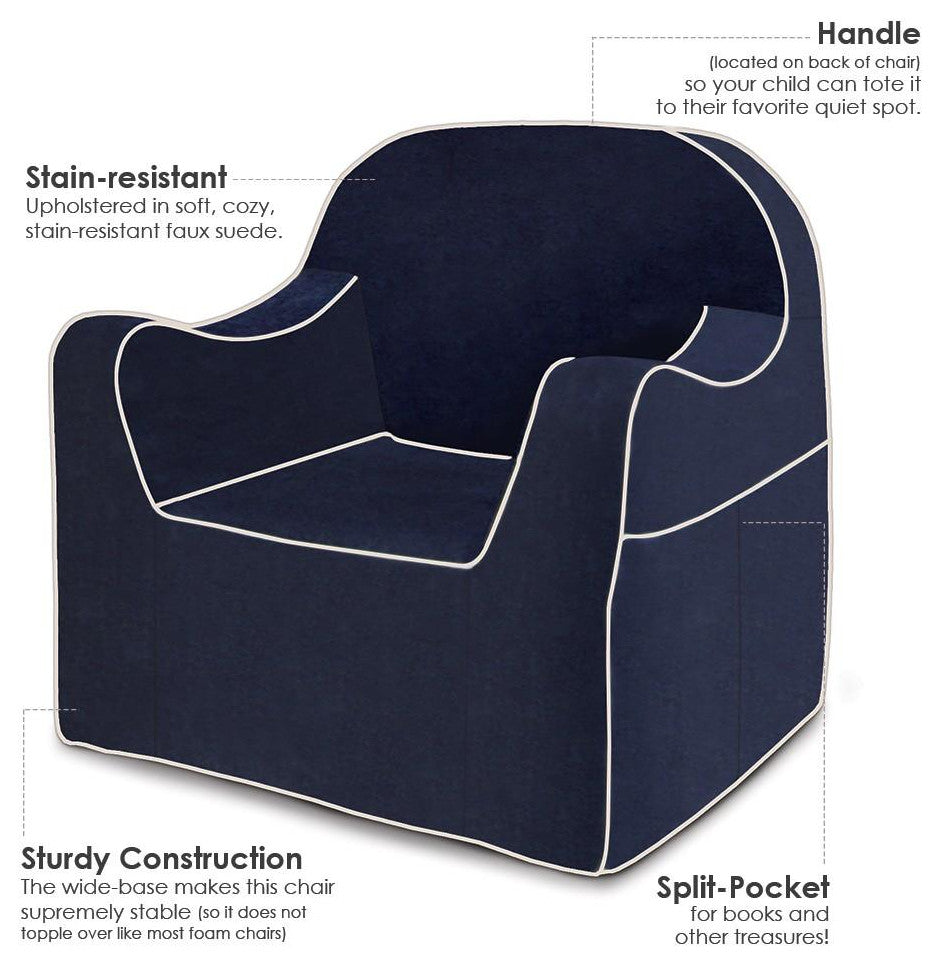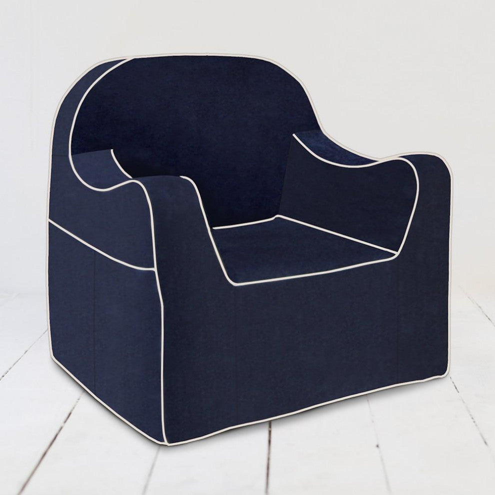 P''kolino Reader Chair Navy Blue with white pipingThe Popular Little Reader has Grown Up! Contemporary, yet playful style for your not-so-little-one. Premium quality fabric, high density foam, and NEW split-pocket design for books. For children 4+ years. FOR THE SAFETY OF YOUR CHILD WE HAVE REMOVED THE ZIPPER HEAD FROM THIS COVER. TO CLOSE OR OPEN THE COVER ZIPPER PLEASE USE A PAPER CLIP AS ZIPPER PULL. SEE INCLUDED INSTRUCTIONS FOR DETAILS.