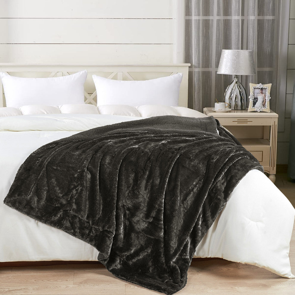 Plain Faux Fur Throw Blanket, Coffee Bean, 50''x60''