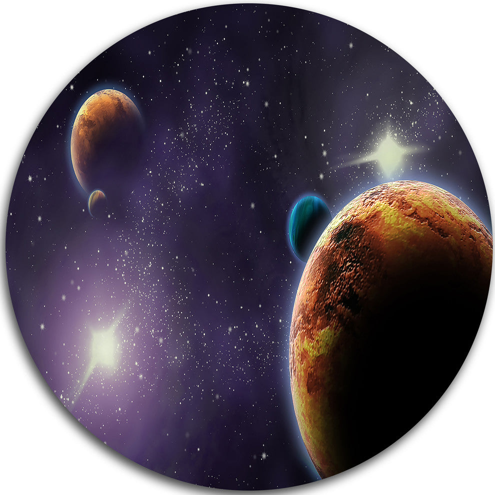 Planets In Deep Dark Space, Contemporary Round Wall Art, 23"