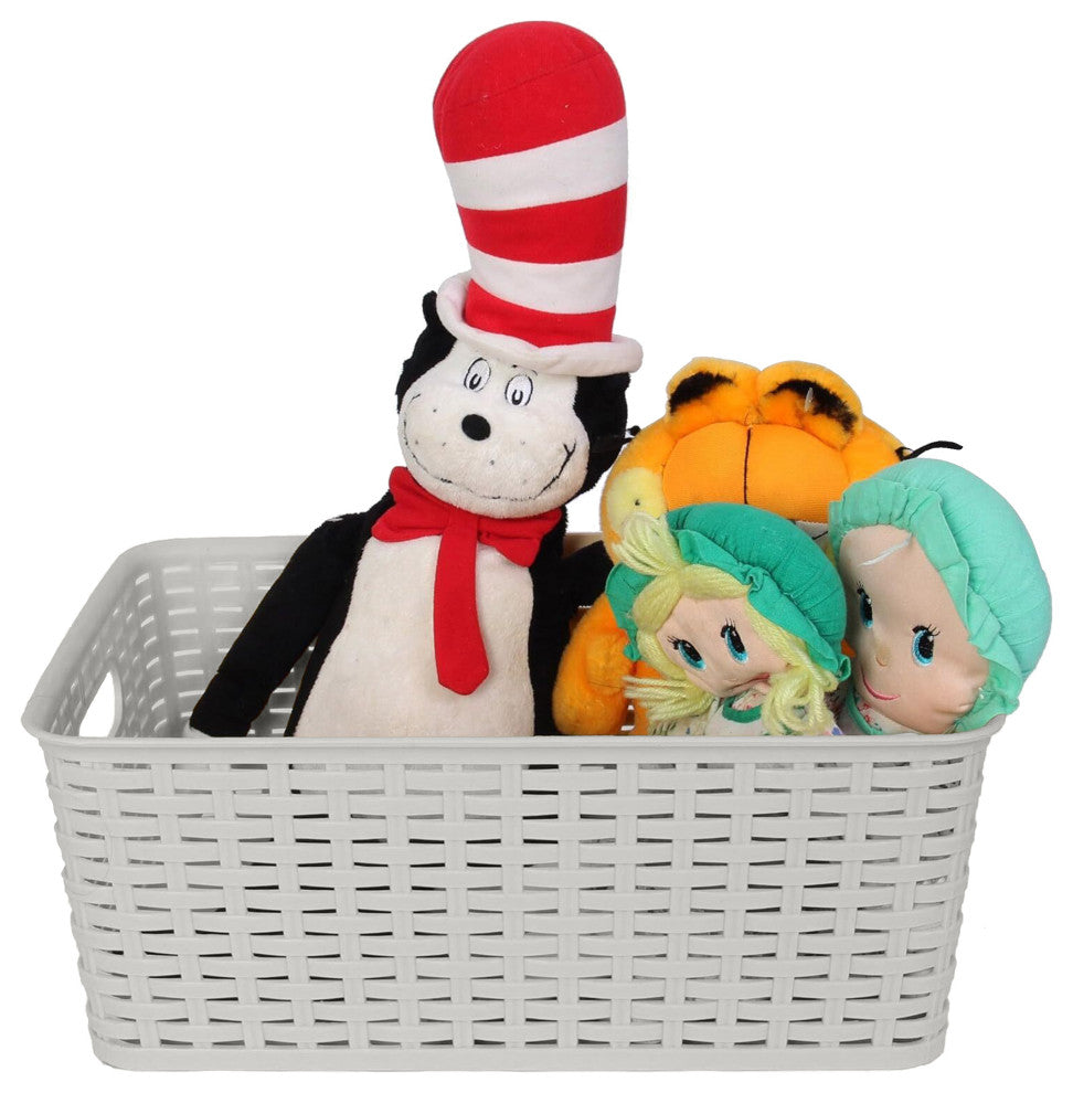 Plastic Rattan Storage Box Basket Organizer, White, Small-Pack of 1
