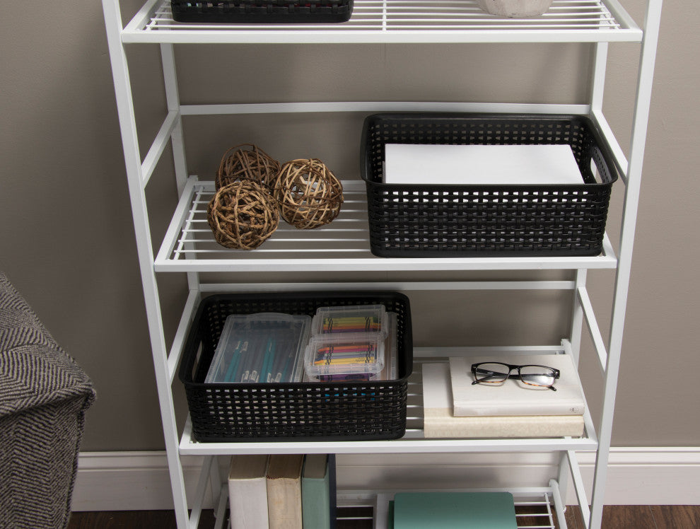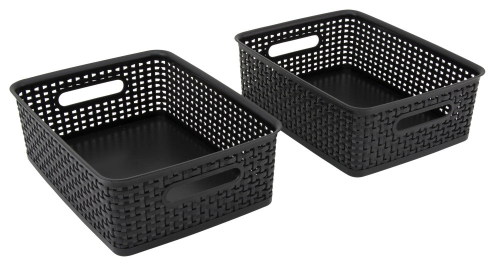Plastic Weave Bin, Medium, Black, 2-Pack