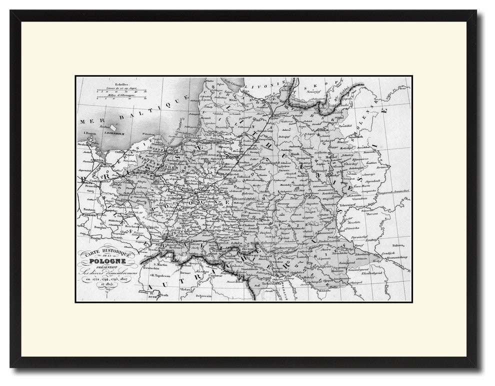 Poland Prussia Germany Vintage B&W Map Canvas Print, 16"x21"