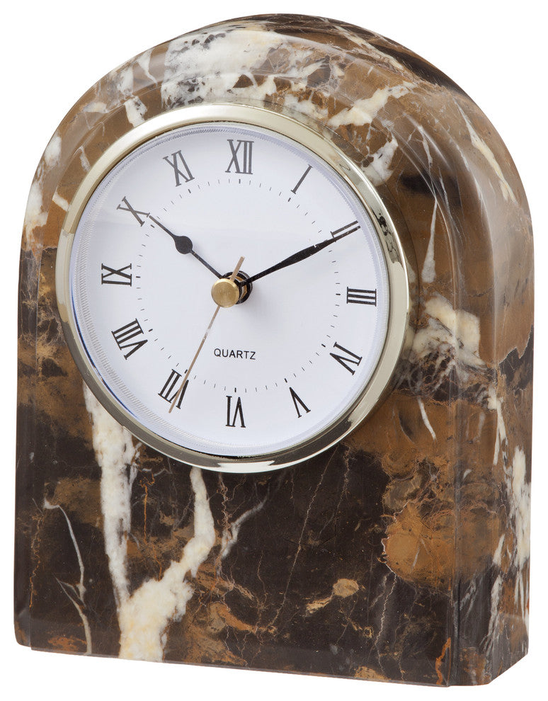 Polaris Collection Black and Gold Marble Desk Clock, Black and Brown