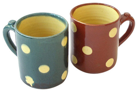 The festive polka-dots on these mugs are one of the artist''s signature decorations. They are sure to add instant French country charm to your kitchen. Dishwasher and microwave safe.