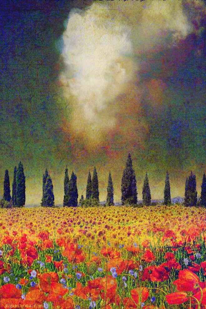 "Poppies and Poplar" Painting Print on Canvas by Chris Vest
