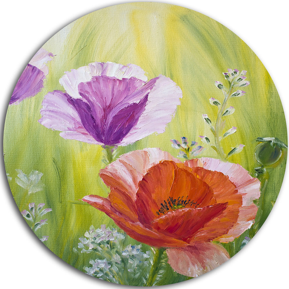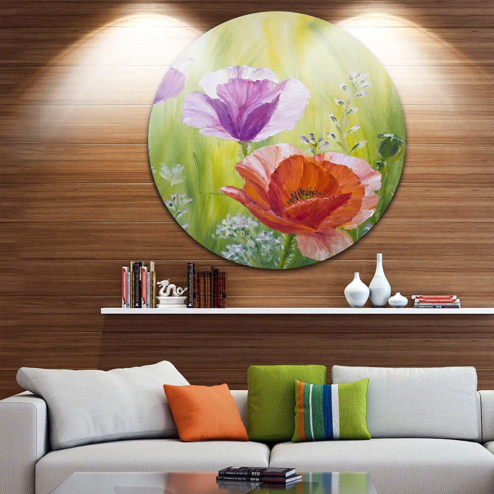 Poppies In The Morning, Floral Round Wall Art, 23"