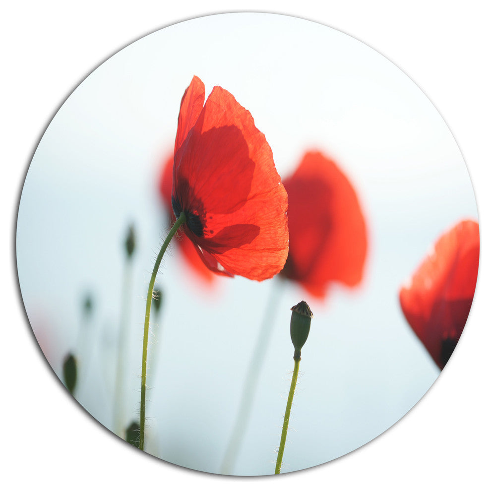 Poppies On Background Of Sea, Modern Floral Round Wall Art, 11"