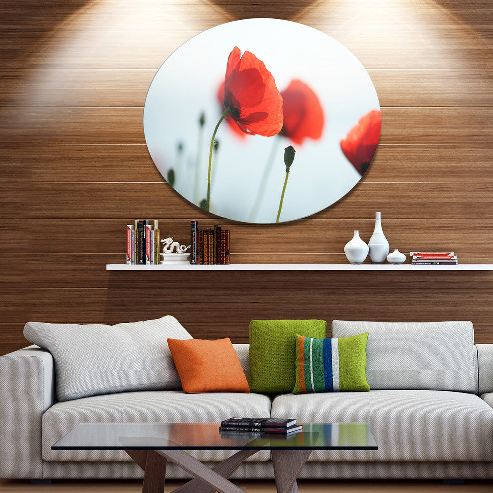 Poppies On Background Of Sea, Modern Floral Round Wall Art, 23"