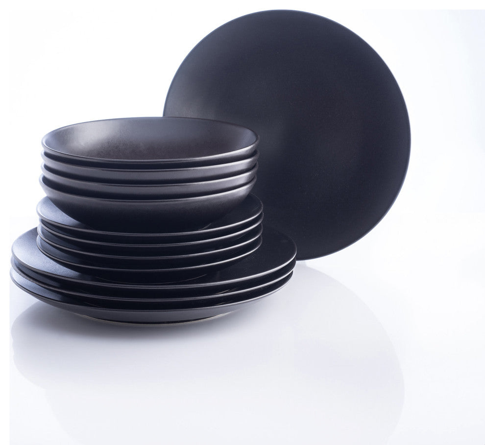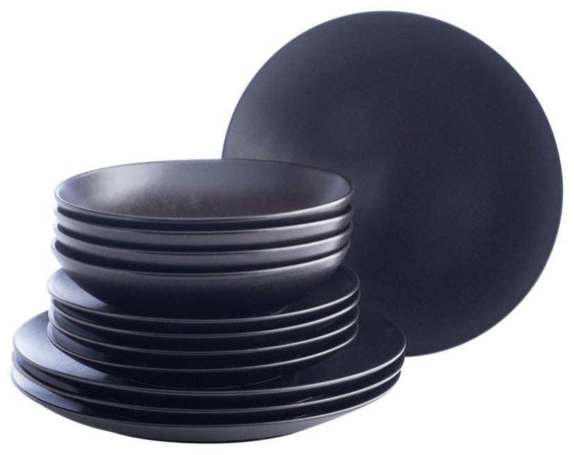 Porto by Stone Lain Semplice Stoneware Dinnerware Set, Black Matte, 12-Piece