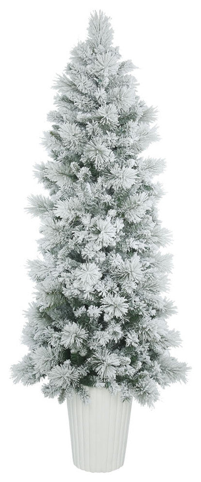 Potted Flocked Castle Pine Christmas Tree, 510 Tips, 7'x29"