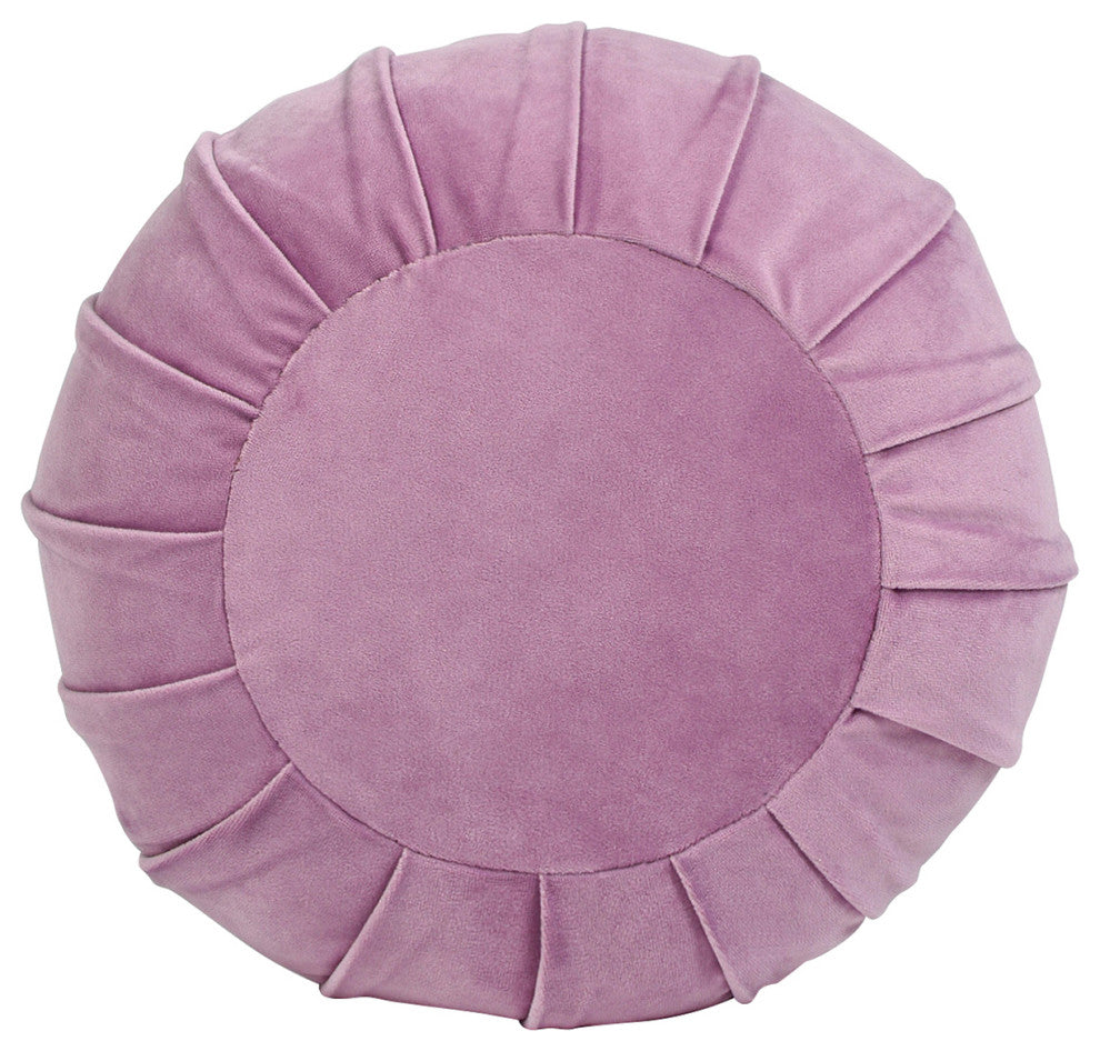 Pouffe 13" Velvet Round Pleated Accent Throw Pillow, Lavender