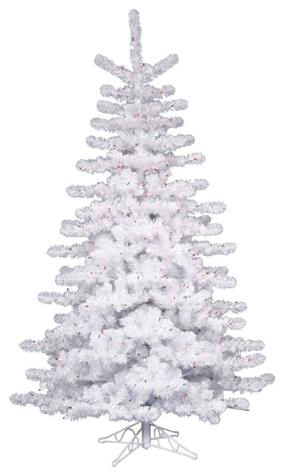 12 Foot Lighted Crystal White Artificial Christmas Tree Item #A805792Features beautiful bright white branches with 1" long needles, this tree provides an elegant backdrop for your ornaments and decorations.Product Features:5300 Tips1900 Multi-Colored mini lightsIf one bulb goes out the rest will stay litHinged-branch constructionComes with a Free white metal tree standUL listed for indoor use onlyWhite lead cordDimensions: 12 feet highApproximate base diameter: 81 inches (at widest point) Material(s): PVC/Metal
