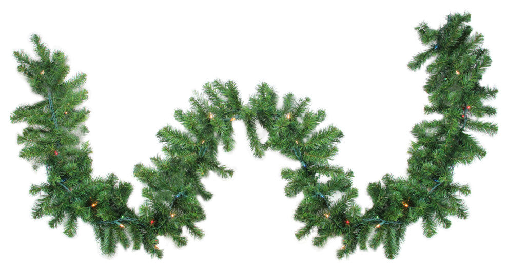 Pre-Lit Pine Artificial Christmas Garland, Multi-Color Lights, Green, 9'x10"