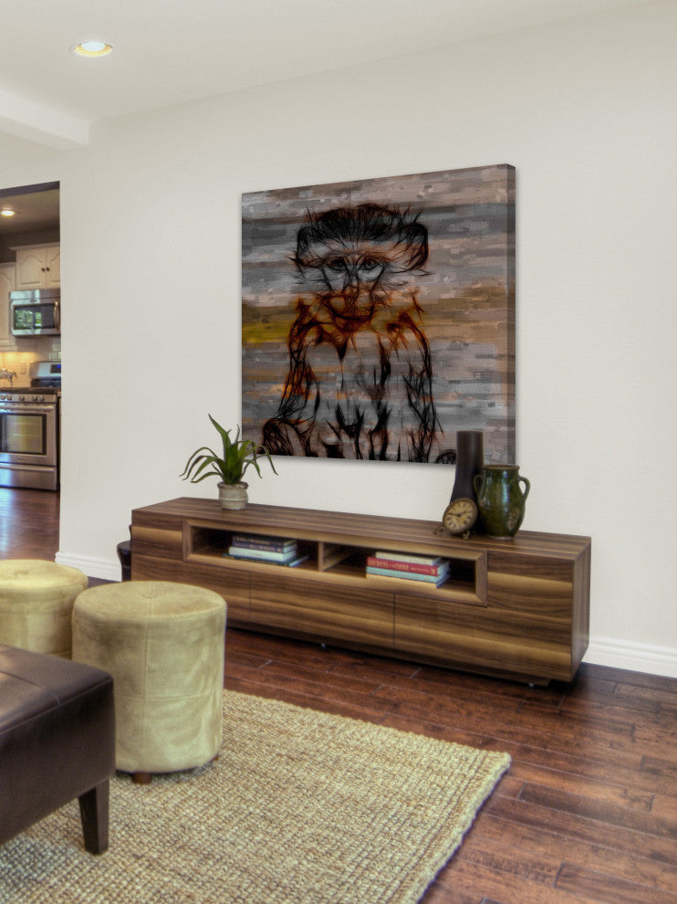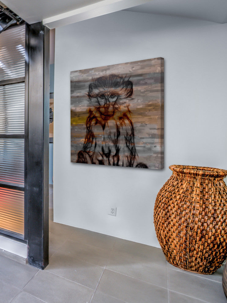 Striking and unique, the "Primate" Print on Canvas by Parvez Taj will bring your walls to life. Printed on canvas, this 40 inch wide by 40 inch tall contemporary artwork will make a statement in any living room, dining room, or bedroom.- Fine art canvas print by Parvez Taj- Professionally hand stretched- Gallery wrapped in sustainable, non-warping wood- Arrives ready to hang- Made in the USA- Includes a certificate of authenticity- Artist signature on the front