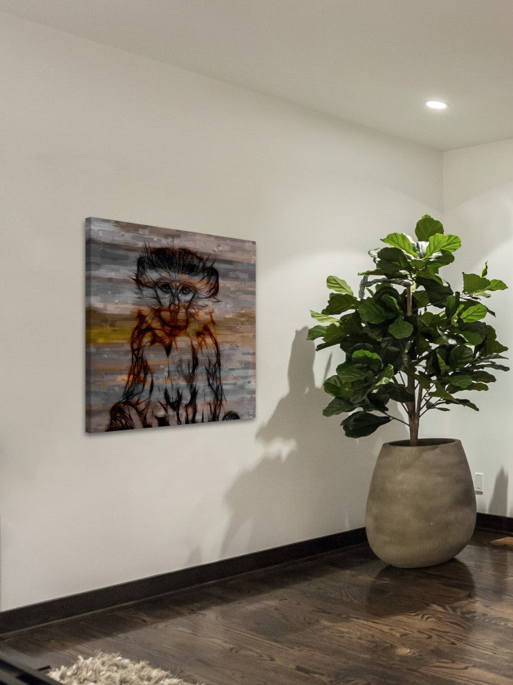 Striking and unique, the "Primate" Print on Canvas by Parvez Taj will bring your walls to life. Printed on canvas, this 48 inch wide by 48 inch tall contemporary artwork will make a statement in any living room, dining room, or bedroom.- Fine art canvas print by Parvez Taj- Professionally hand stretched- Gallery wrapped in sustainable, non-warping wood- Arrives ready to hang- Made in the USA- Includes a certificate of authenticity- Artist signature on the front